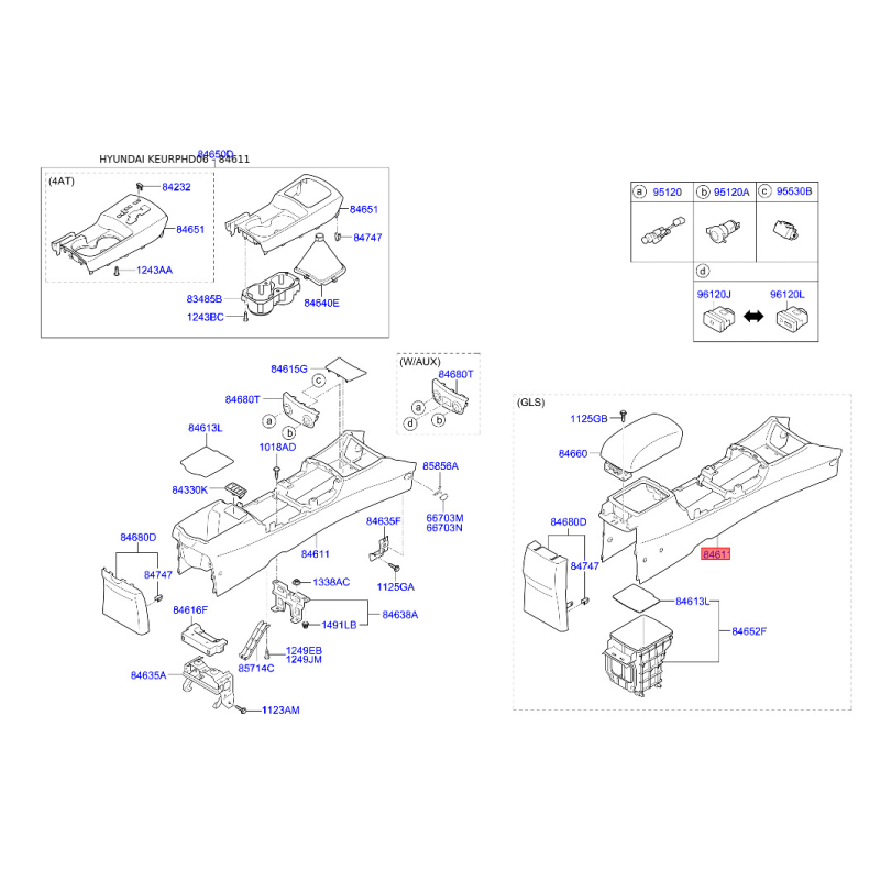 Центральна консоль комплектуючи 84611-2H0004W Mobis