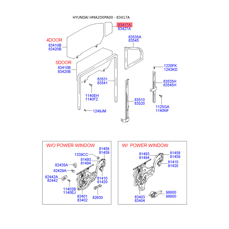 Бокове вікно дверей ліве 83417-2D010 Mobis