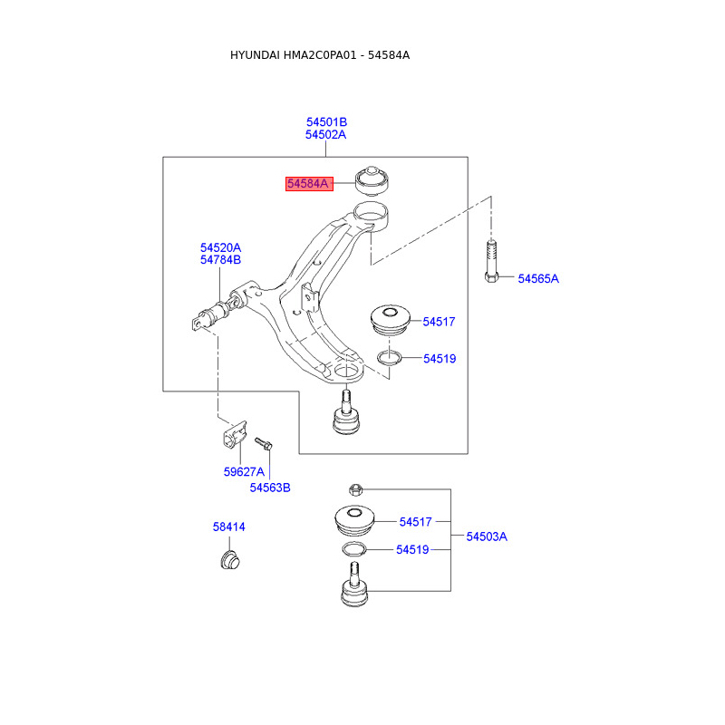 Сайлентблок важеля підвіски нижній 54584-38010 Mobis