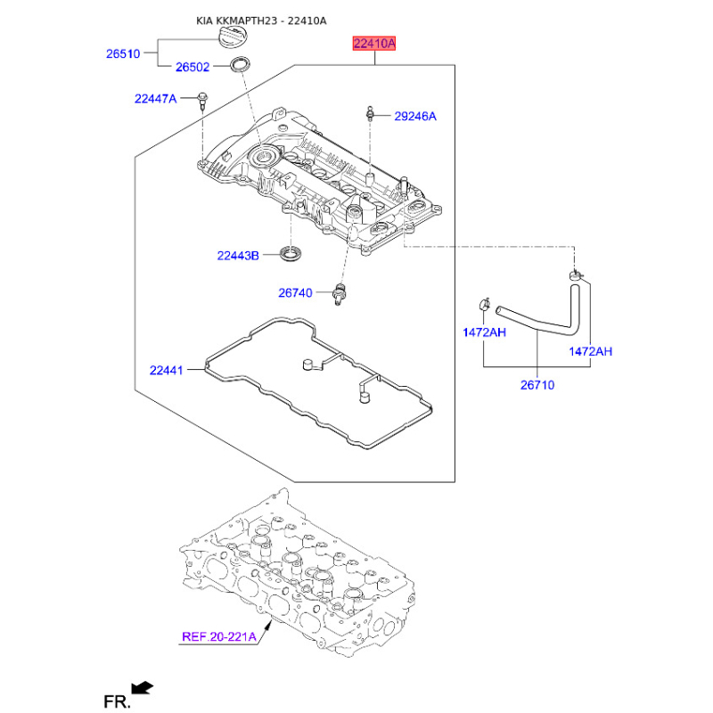 Якщо у вас виникли питання щодо Кришка головки циліндра 22410-2E700 Mobis з номером 224102E700, зв'яжіться з нашим консультантом.