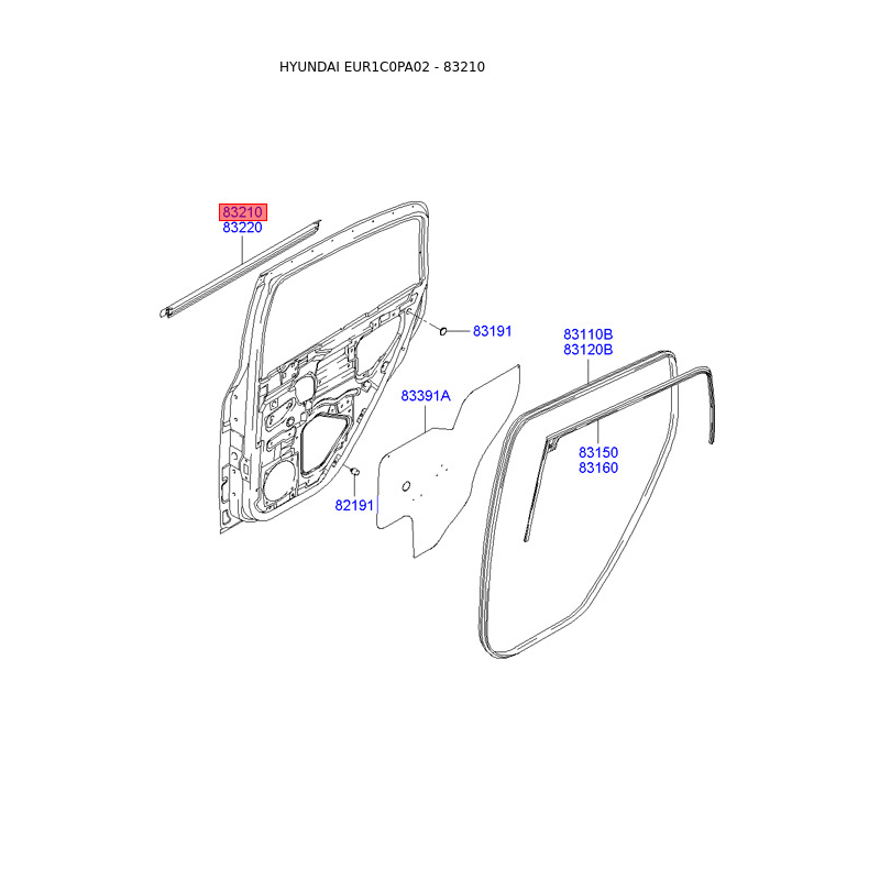 При отриманні замовлення перевіряйте комплектацію товару Ущільнювач (прокладка), бічне скло лівий 83210-1C002 Mobis.