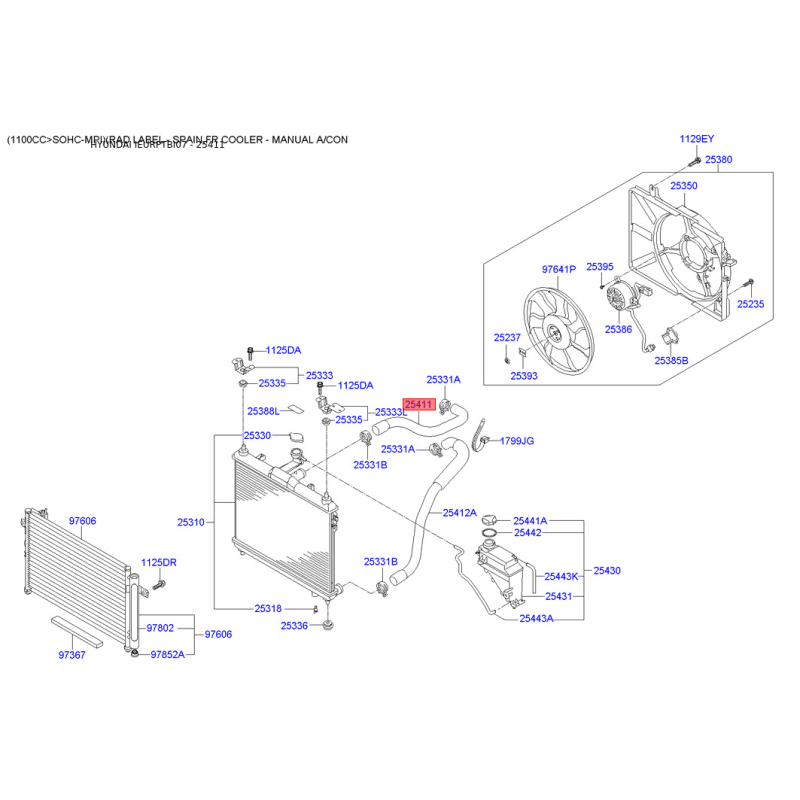Оригінальний код 254111C000 повністю збігається з каталожними номером виробника Mobis.