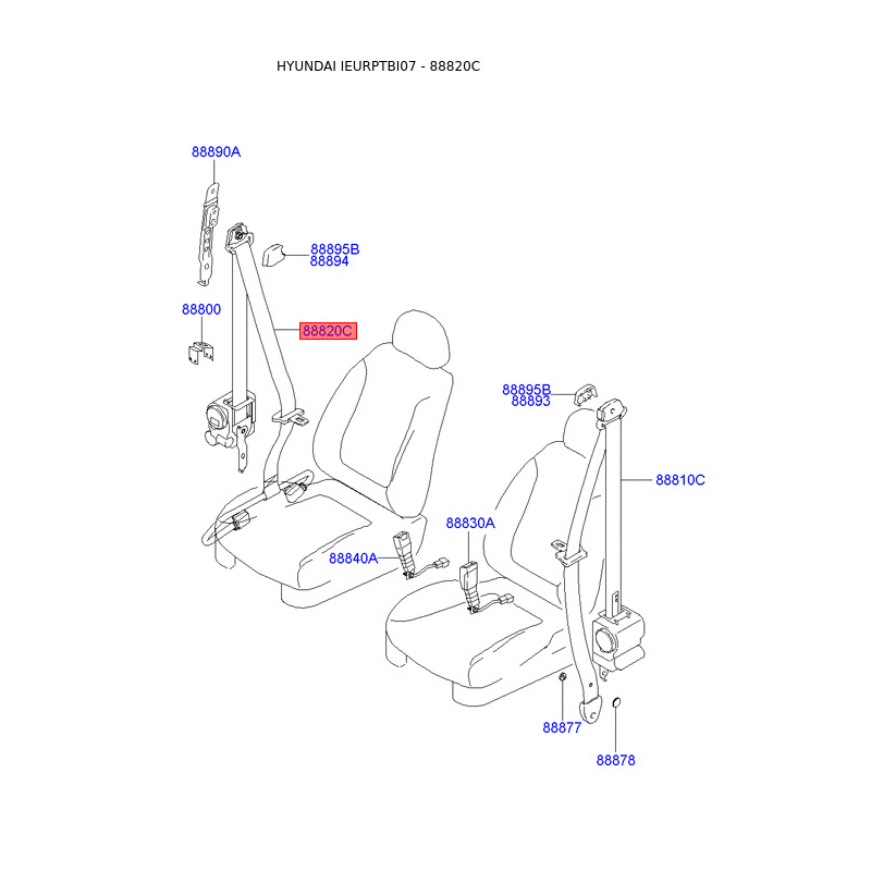 Ремінь безпеки правий 88820-1C801WK Mobis