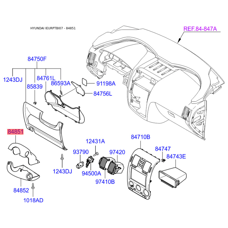 При отриманні замовлення перевіряйте комплектацію товару Накладка панелі приладів (торпеди) верхня 84850-1C500WK Mobis.