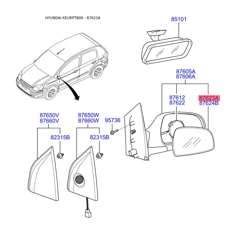 Якщо у вас виникли питання щодо Дзеркальний елемент зовнішнього дзеркала задній лівий 87611-1C400 Mobis з номером 876111C400, зв'яжіться з нашим консультантом.