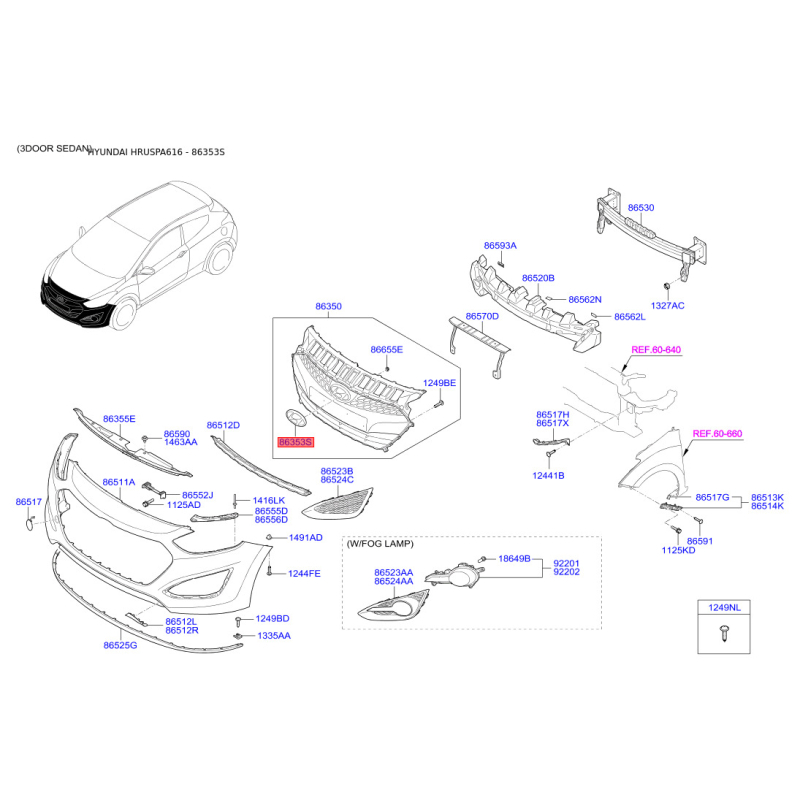 Пошук деталей можна виконати за оригінальним кодом 86353A5000.