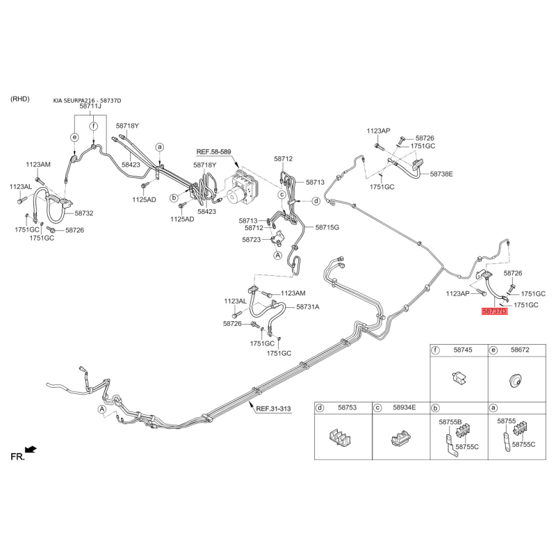Шланг гальмівний задній лівий 58737-A6300 Mobis - 58737A6300 Артикул 58737A6300