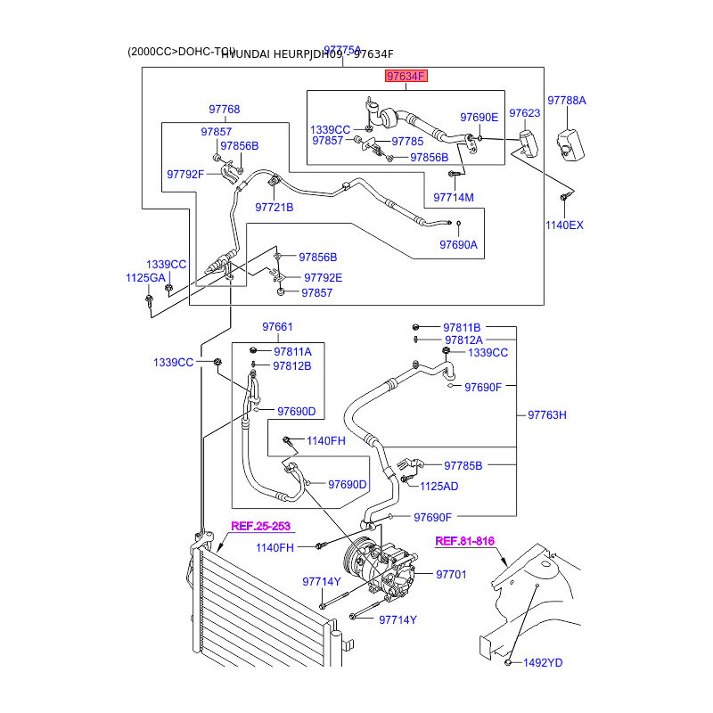 Трубопровід високого/низкого тиску, кондиціонер 97764-2R200 Mobis