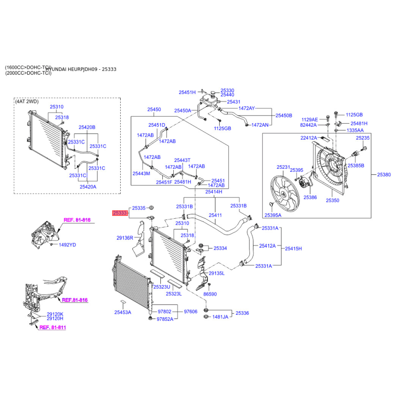 При отриманні замовлення перевіряйте комплектацію товару Кріплення радіатора верхнє 25333-2L200 Mobis.