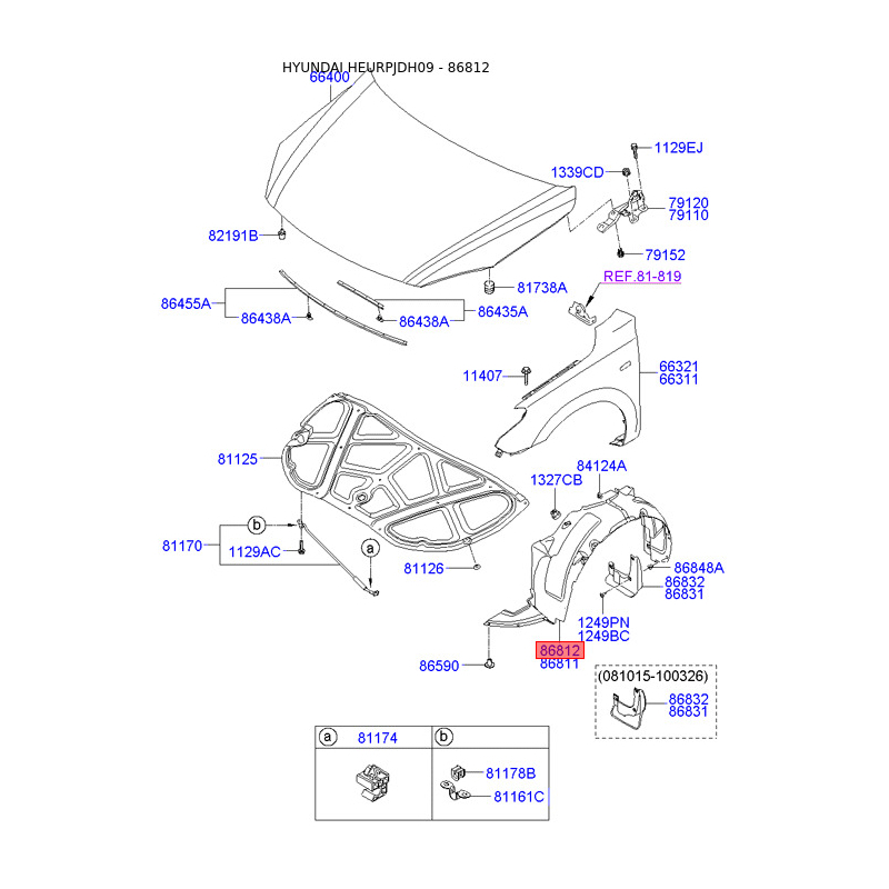 При отриманні замовлення перевіряйте комплектацію товару Обшивка (підкрилок), колісна ніша права 86812-2R500 Mobis.