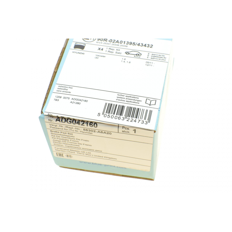 Колодки гальмівні дискові комплект задні Blue Print - ADG042160 Артикул ADG042160