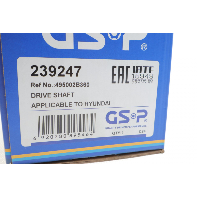 Оригінальний код GSP 239247 повністю збігається з каталожними номером виробника GSP.