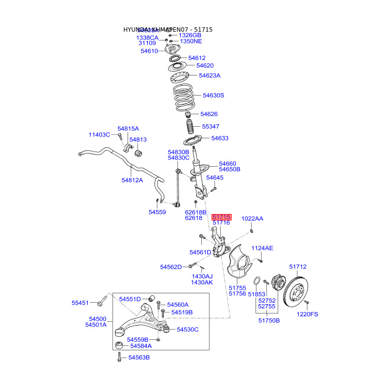 Якщо у вас виникли питання щодо Поворотний кулак, підвіска колеса лівий 51715-2B050 Mobis з номером 517152B050, зв'яжіться з нашим консультантом.