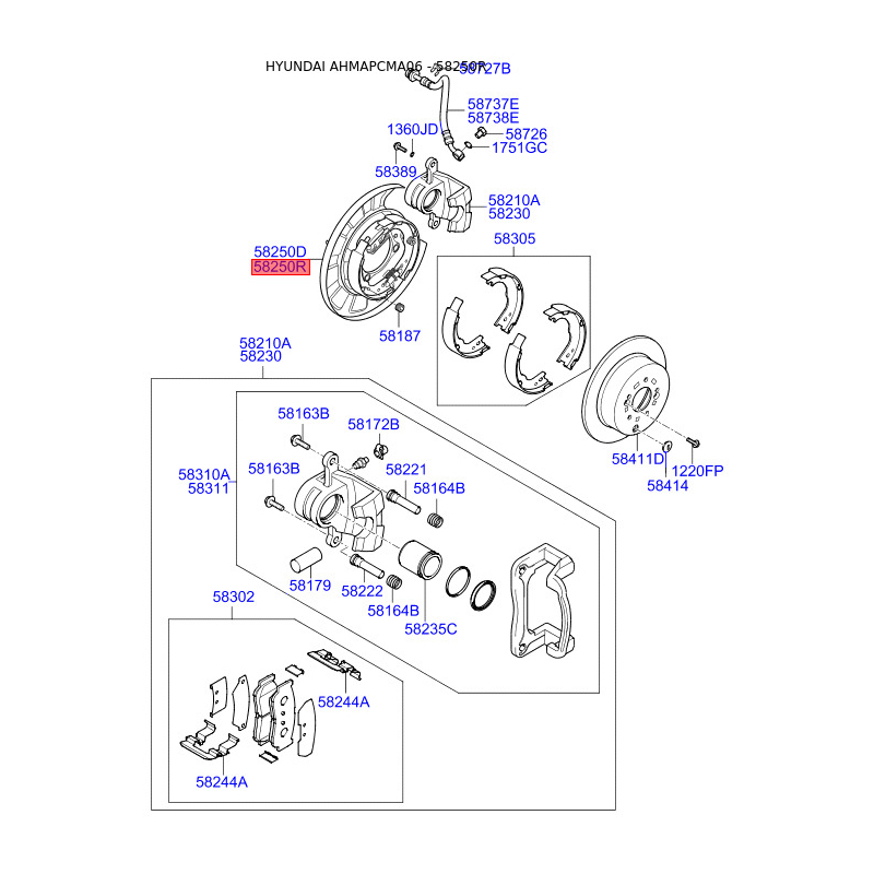 Щит заднього стоянкового гальма в зборі задній правий 58270-2B000 Mobis