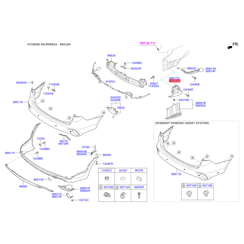 При отриманні замовлення перевіряйте комплектацію товару Кронштейн, буфер правий нижній 86618-B8500 Mobis.