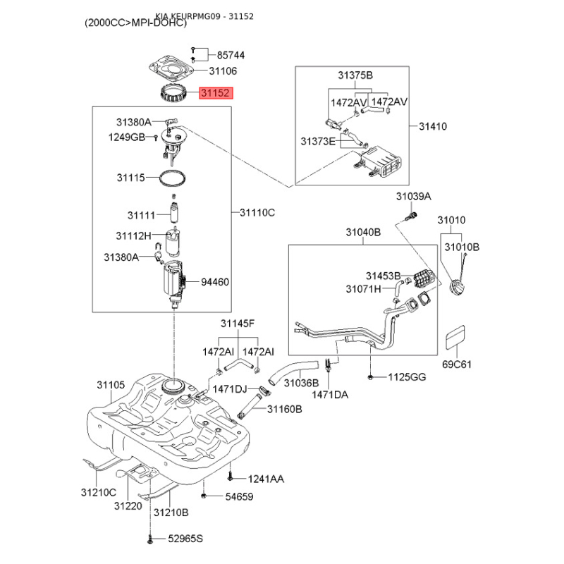 Якщо у вас виникли питання щодо Кришка, паливний бак 31152-2D000 Mobis з номером 311522D000, зв'яжіться з нашим консультантом.