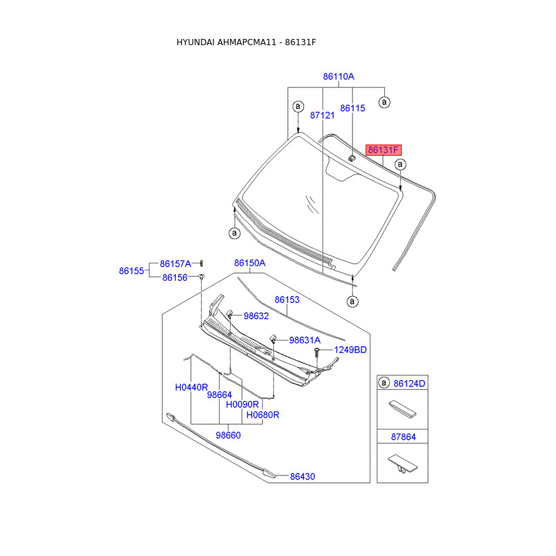 Молдинг (ущільнювач) лобового скла 86131-2B000 Mobis