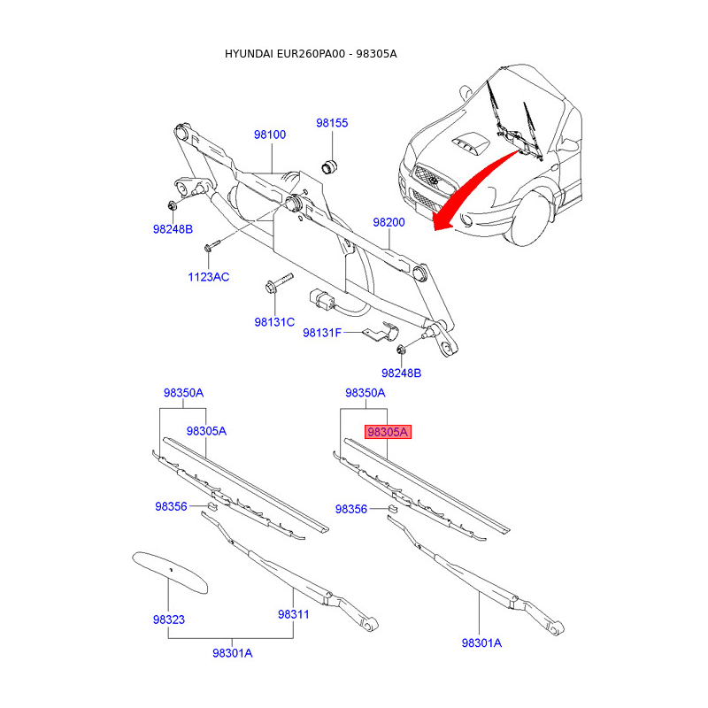Якщо у вас виникли питання щодо Щітка склоочисника 98361-26000 Mobis з номером 9836126000, зв'яжіться з нашим консультантом.