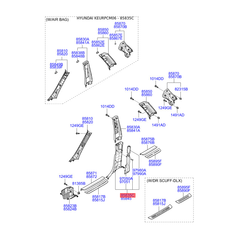 Оббивка (накладка) салону ліва нижня 85835-2B001WK Mobis