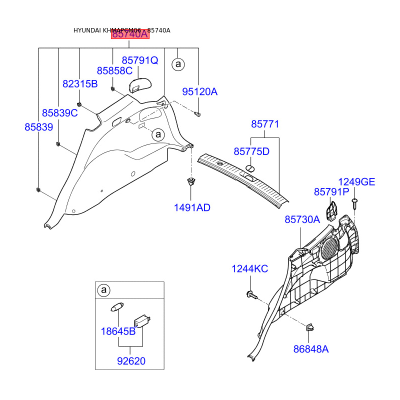При отриманні замовлення перевіряйте комплектацію товару Оббивка багажника права 85740-2B000J9 Mobis.