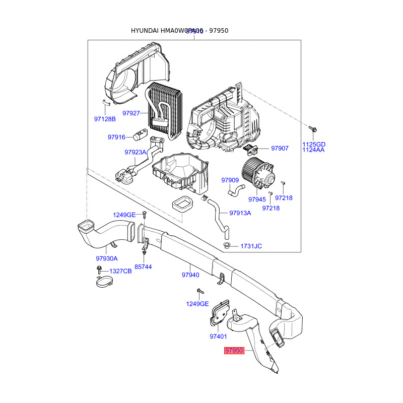 Повітропровід системи опалення та кондиціонування лівий 97950-2B000 Mobis