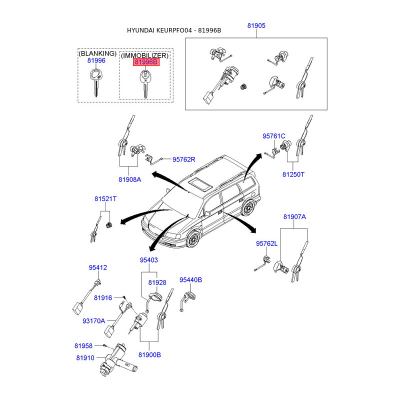 Ключ (вставка) дверей у брелок 81996-38010 Mobis