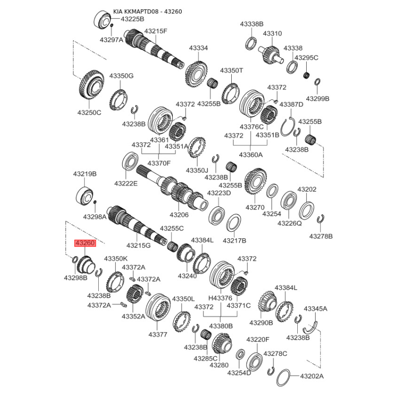 При отриманні замовлення перевіряйте комплектацію товару Шестерня, первинний вал 43260-24310 Mobis.