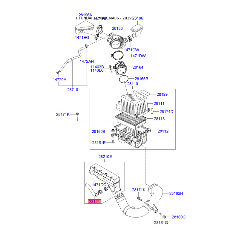 При отриманні замовлення перевіряйте комплектацію товару Рукав повітрозабірника, повітряний фільтр 28192-2B100 Mobis.