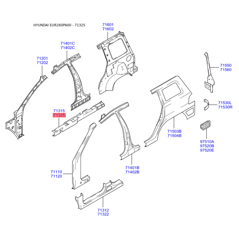 Поріг підлоги (кузов) правий 71160-26200 Mobis