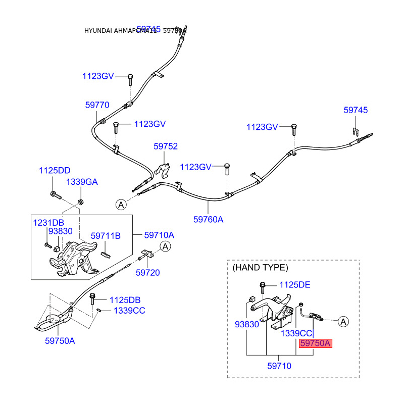 Трос стоянкової гальмівної системи 59750-2B000 Mobis