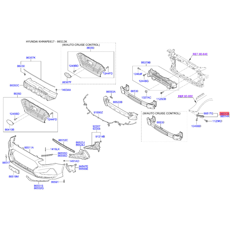 Пошук деталей можна виконати за оригінальним кодом 86513C1AA0.