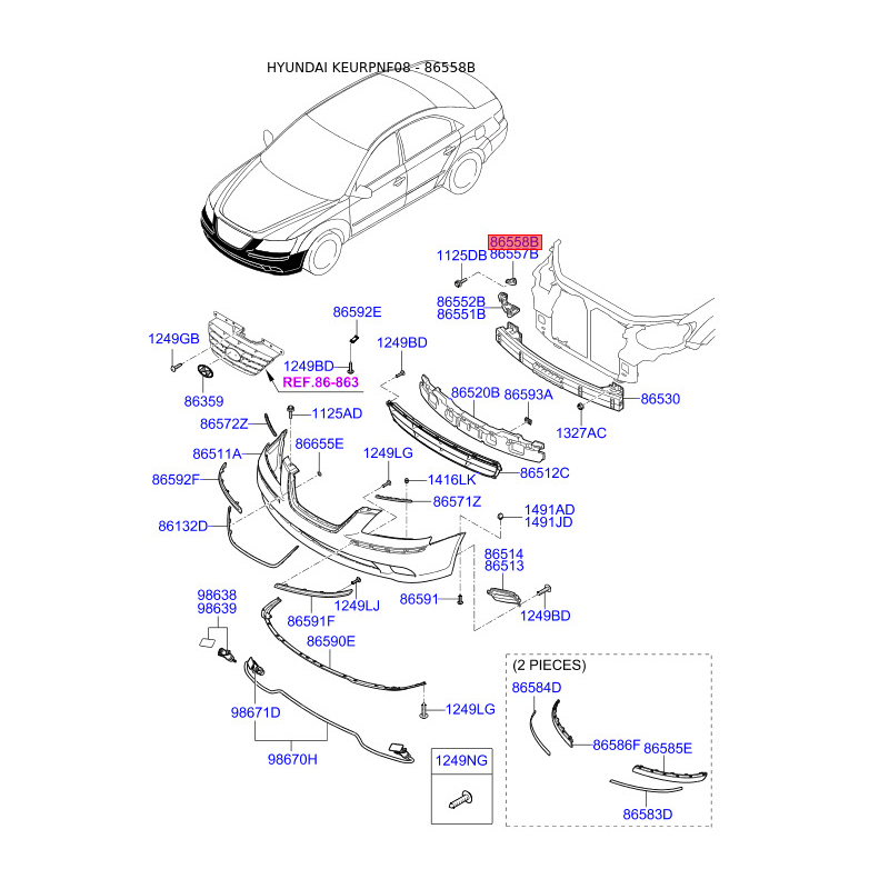 При отриманні замовлення перевіряйте комплектацію товару Кронштейн, буфер правий 86558-3K500 Mobis.