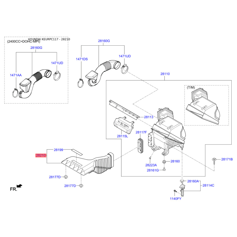 При отриманні замовлення перевіряйте комплектацію товару Рукав повітрозабірника, повітряний фільтр 28210-C1940 Mobis.