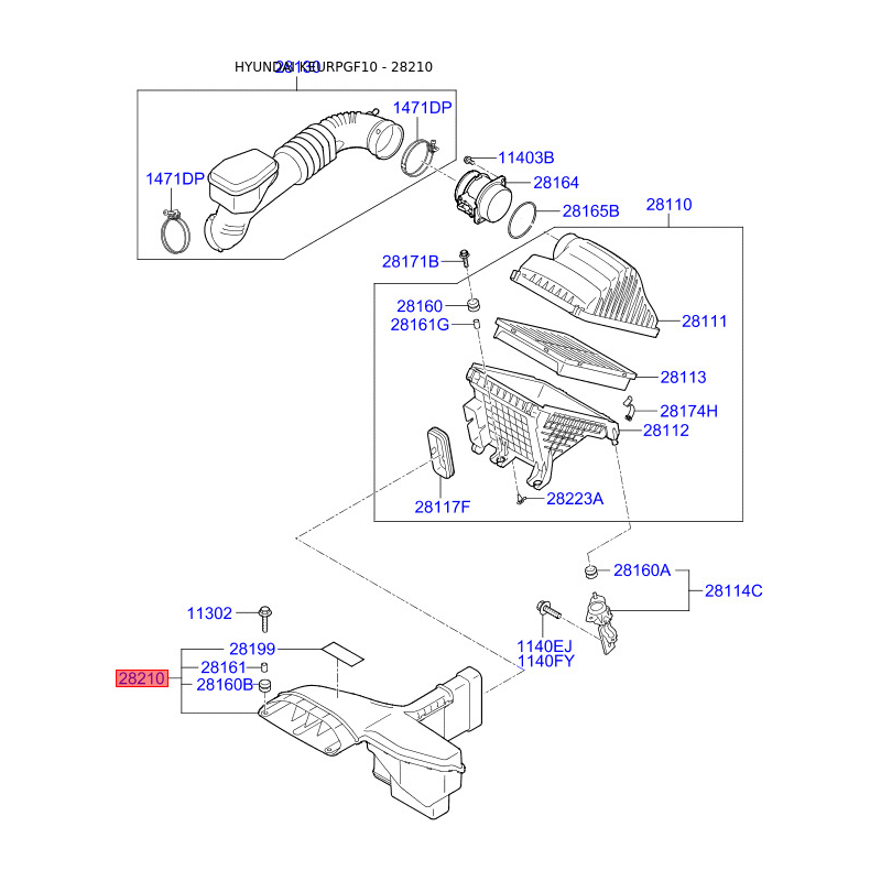 Рукав повітрозабірника, повітряний фільтр 28210-3S900 Mobis