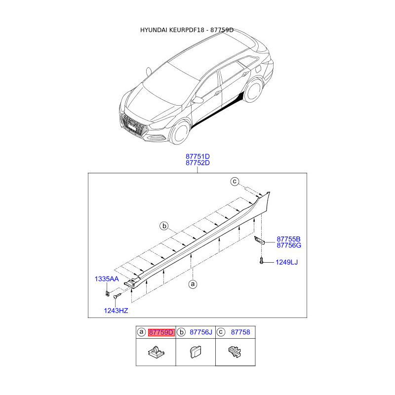 Пошук деталей можна виконати за оригінальним кодом 877593Z000.