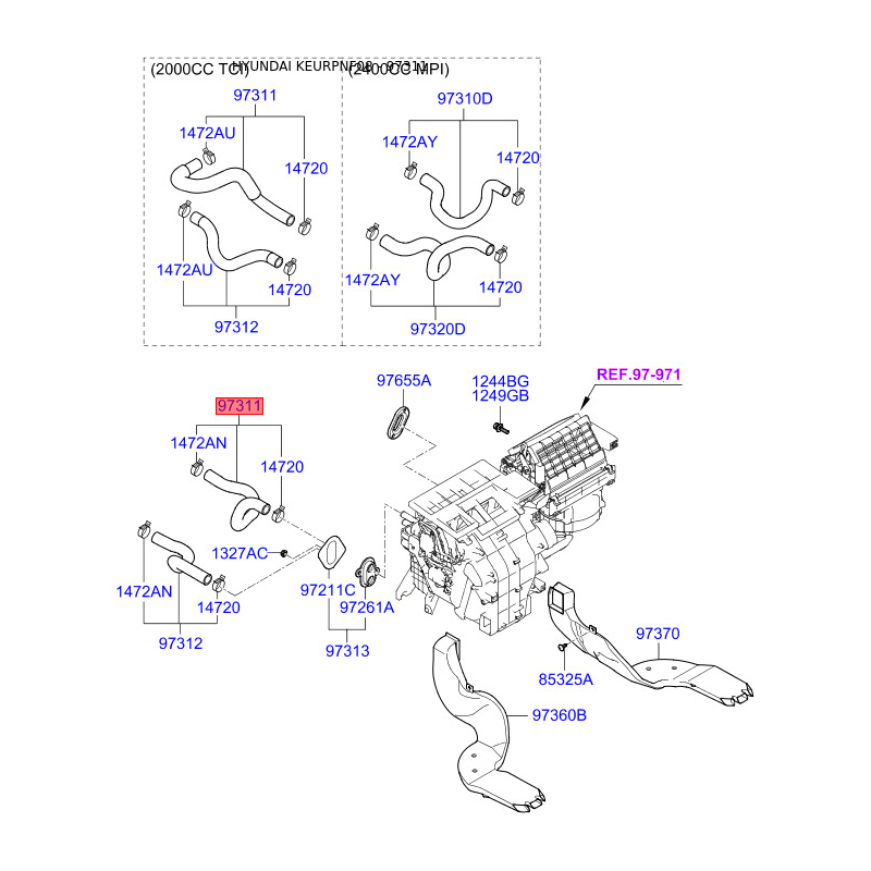 При отриманні замовлення перевіряйте комплектацію товару Шланг, теплообмінник - опалення 97311-3K100 Mobis.