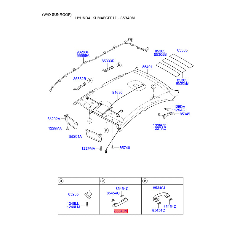 Ручка (поручень), внутрішнє оснащення передня права 85340-3S000YDA Mobis