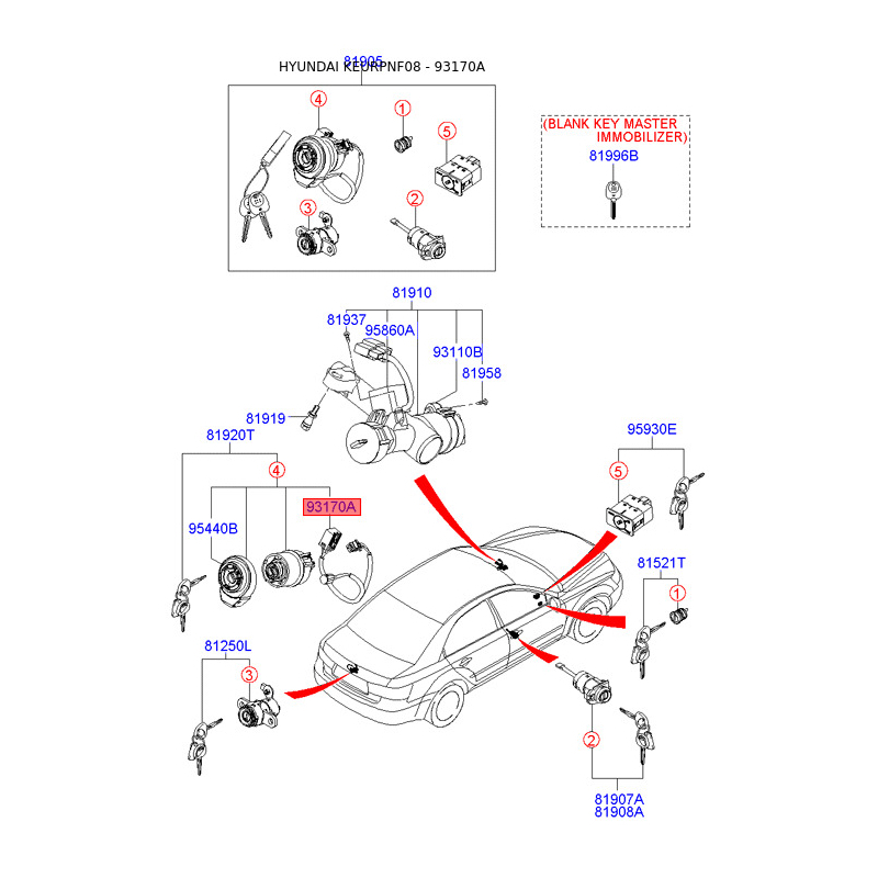 При отриманні замовлення перевіряйте комплектацію товару Підсвічування замка запалювання 93170-3K500 Mobis.