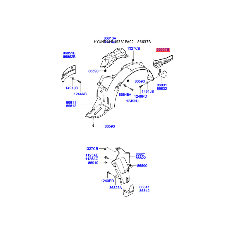 Кріплення підкрилка і бризковика нижнє 97520-3D000 Mobis