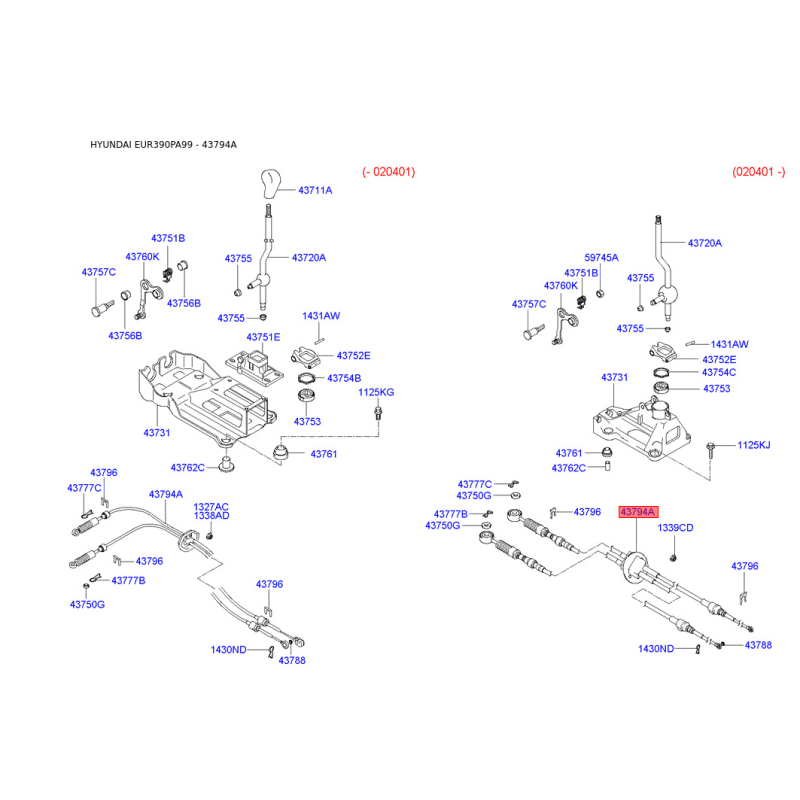 При отриманні замовлення перевіряйте комплектацію товару Трос, управління зчепленням 43794-38300 Mobis.
