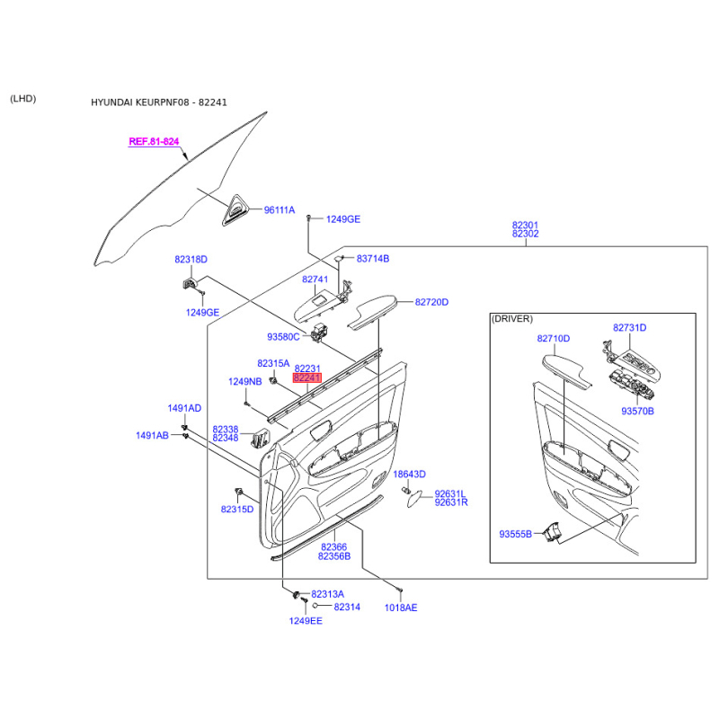 Пошук деталей можна виконати за оригінальним кодом 822413K000.