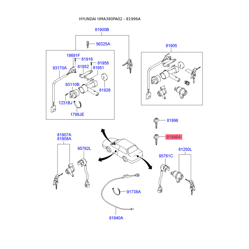 Ключ (вставка) дверей у брелок 81996-34010 Mobis