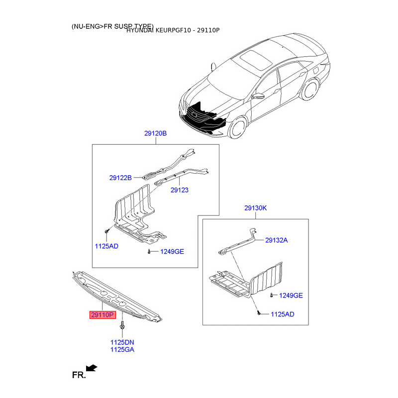 Якщо у вас виникли питання щодо Захист двигуна / піддон двигуна передній 29110-3Q000 Mobis з номером 291103Q000, зв'яжіться з нашим консультантом.