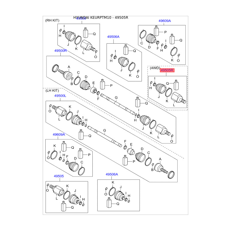 Шарнірний комплект приводного вала правий 49597-2S000 Mobis