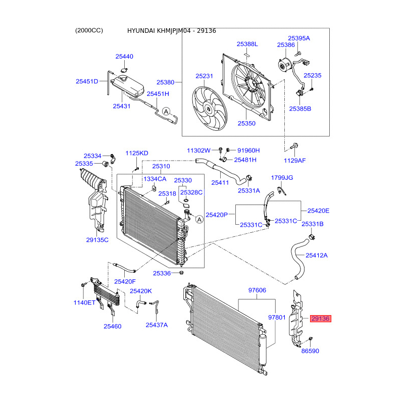 Спойлер, облицювання радіатора праве 29136-2E000 Mobis