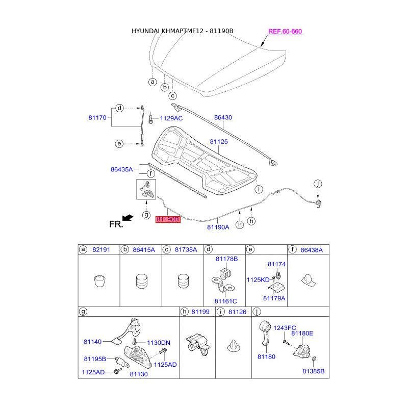 Тросик замку капота 81190-2S100 Mobis
