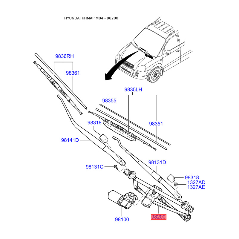 Привід склоочисника, система очищення вікон 98150-2E010 Mobis
