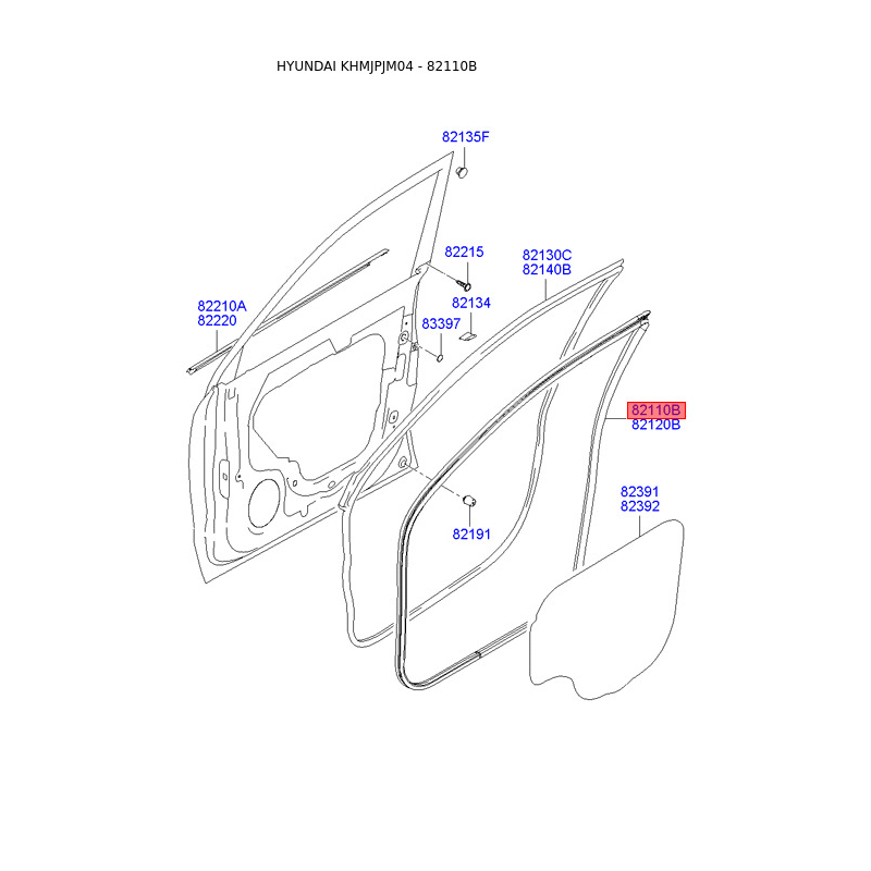 При отриманні замовлення перевіряйте комплектацію товару Ущільнення дверей ліве 82110-2E001 Mobis.