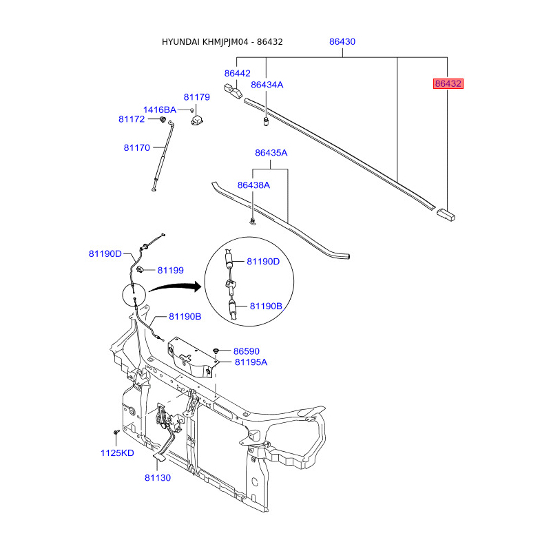 Пошук деталей можна виконати за оригінальним кодом 864322E000.