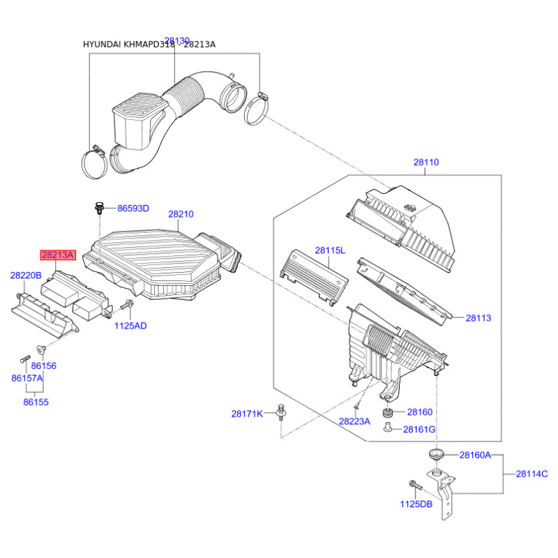 При отриманні замовлення перевіряйте комплектацію товару Рукав повітрозабірника, повітряний фільтр 28213-D3000 Mobis.
